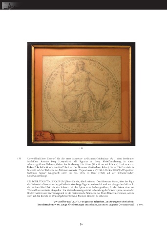 Unveröffentlichter Entwurf für die erste Schweizer 20-Franken-Goldmünze 1871. Vom berühmten