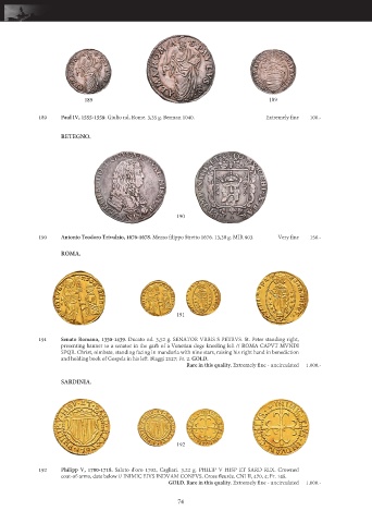 189 Paul IV, 1555-1559. Giulio nd, Rome. 3,35 g. Berman 1040. Extremely fine 100.-