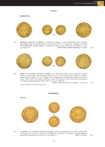 208 Sedivakanz, 1396-1397. Goldgulden o.J. (1396/1397), Bingen. 3,49 g. SCS MERTINVS EPS. St. Martin